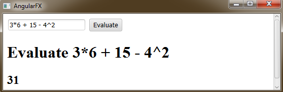 La page web angularfx.html comprend une application AngularJS permettant l'évaluation (asynchrone) de code Groovy saisi dans une zone d'édition, et d'en afficher le résultat dans la page web.