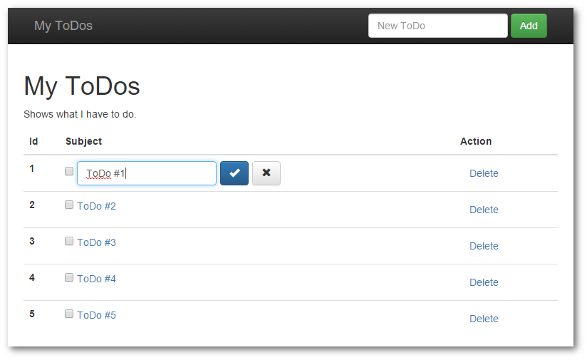 Dans mon projet odelia-gina-angular, je vous propose de suivre pas à pas dans un tutoriel, la création d'une application Grails de gestion de TODOs (sauvegardés en base de données), utilisant le profil AngularJS.